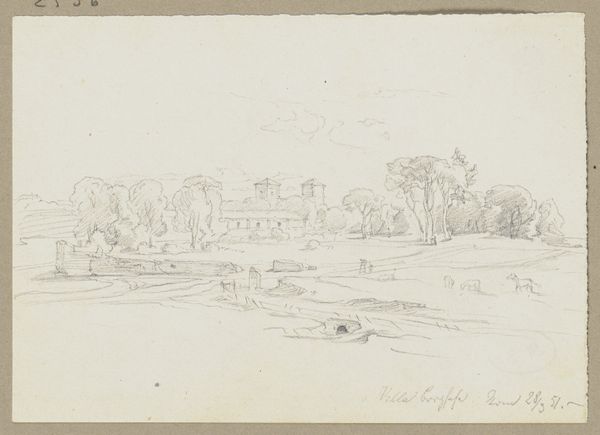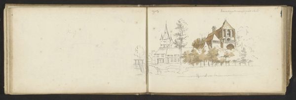 Cornelis Pronk made this drawing of 'Huis en tuin van Gillis Pauwelsz' with pen in hand. Notice how the linear precision and delicate balance creates a sense of measured calm. The composition is split across the sketchbook’s two pages, yet the garden and house unite in a continuous scene. Pronk meticulously delineates architectural details, from window panes to roof tiles, contrasting with the softer, more organic rendering of trees and foliage. This contrast isn’t merely representational; it speaks to the 18th-century Dutch fascination with order versus nature, structure versus fluidity. The symmetry of the house is subtly offset by the asymmetry of the garden’s layout, creating a visual tension that invites closer inspection. The lines define the forms but also suggest a deeper interplay between human control and the natural world. Pronk presents us not just with a depiction, but with a carefully constructed visual argument about space, form, and the cultural values they embody. This drawing remains a testament to the power of line and form in conveying complex ideas.