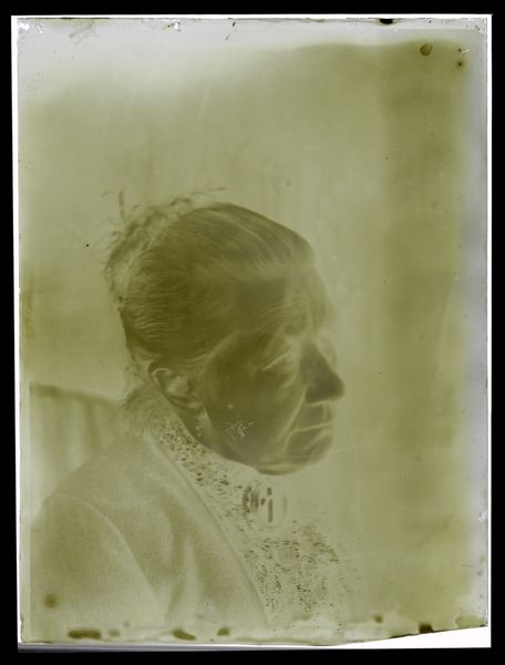 Editor: Here we have an intriguing photograph entitled "Portret van een onbekende man of vrouw," dating from around 1865 to 1900, rendered in gelatin silver print. The ghostly visage definitely evokes a feeling of solemn reflection, or even loss. How do you interpret this work? Curator: It's crucial to examine photography’s burgeoning role in the late 19th century, particularly in shaping identity. Consider this: photography democratized portraiture, previously reserved for the elite. This portrait of an unknown individual allows us to meditate on themes of anonymity, the transient nature of existence and power dynamics. Who were they? What social class did they belong to? Did the anonymity give them certain agency? Editor: That’s a fascinating perspective. The blurriness and subdued tones seem to obscure rather than reveal. Do you think that was intentional? Curator: The technical limitations of early photography are certainly a factor, but consider the symbolic weight too. Is the sitter’s ‘obscured’ identity a commentary on the erasure of certain groups from dominant historical narratives? The sitter may have had limited agency regarding how they would like to be portrayed or represented. Photography, while seemingly objective, is always mediated. Editor: That gives me a lot to consider. I hadn't thought about how photographic portraits are actually records shaped by particular people, by a specific gaze of the photographer. Curator: Precisely. By analyzing its social context and material qualities, we can begin to challenge conventional notions of representation and unlock richer, more inclusive stories. Editor: I’ll definitely view photographic portraiture differently from now on! Thanks. Curator: My pleasure! It is important to continue examining photography, and other media, to see how the work challenges social assumptions and represents those who have often been forgotten.