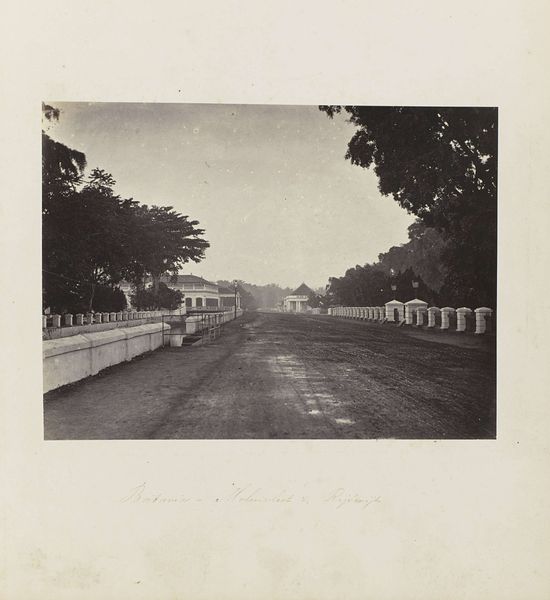 Woodbury & Page made this photograph, "Batavia - Gang Scott," to capture a street scene in what is now Jakarta, Indonesia, during the colonial era. The image presents a tree-lined road, illustrating the imposition of European order on a tropical landscape. The neat fences and carefully planted trees speak to the Dutch colonial project of transforming the East Indies into a profitable and governable territory. These visual elements subtly assert colonial power, demonstrating control over the environment. The photograph was likely commissioned or sold to Europeans eager to document and consume images of their colonial possessions. To fully understand this image, one needs to research the history of Dutch colonialism, the role of photography in shaping perceptions of the East Indies, and the social hierarchies that defined life in Batavia.