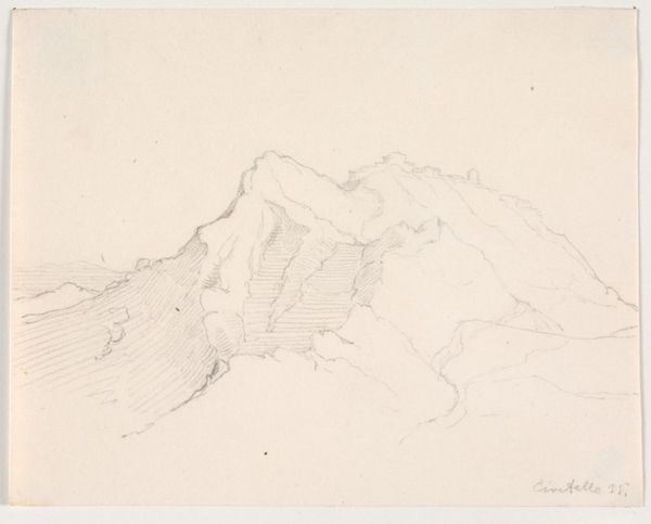 Editor: This is John Singer Sargent's "Mountain Peaks," a pencil sketch with no specific date, housed at the Harvard Art Museums. It feels so immediate and raw. What can you tell us about it? Curator: Consider the materiality here: graphite on paper, mass-produced materials enabling quick capture. Sargent, known for oil portraits of the elite, uses humble means to depict sublime nature. Does this democratisation of landscape imagery speak to broader social shifts? Editor: That's interesting. So, it's not just a sketch, but a statement about access and artistic expression? Curator: Precisely. It raises questions about who gets to depict what, and with what materials. How does this challenge traditional hierarchies of art and subject matter? Editor: I never thought of it that way before; it's fascinating to consider the socio-political implications even in a seemingly simple sketch. Curator: Indeed. Materiality reveals so much about artistic intent and cultural context.