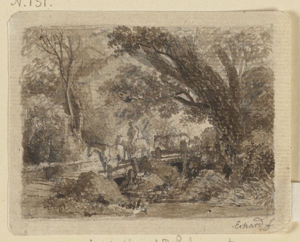 Johann Andreas Benjamin Nothnagel created this delicate etching depicting a horseman crossing a wooden bridge, sometime in the 18th century. Etching involves coating a metal plate with a waxy, acid-resistant material called a ‘ground.’ The artist then scratches through the ground with a needle to expose the metal, and the plate is immersed in acid, which bites into the exposed lines. This painstaking process allows for incredibly fine detail, and a wide range of tonal effects depending on the depth of the etching. The resulting print, like this one, possesses a unique surface quality, a testament to the labor-intensive and highly skilled printmaking processes that flourished during the early modern period. Although mass production of prints existed, the creation of etched plates like this one was the result of individual craftsmanship. It’s a reminder that even in an age of increasing industrialization, hand-based skills remained vitally important. Appreciating the materiality and making of this print enriches our understanding of its cultural significance.