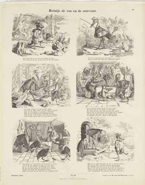 E. Ille's "Reintje de Vos. / Plaat I" is an undated print which brings to life the medieval folk tale of Reynard the Fox. These stories often served as a satirical commentary on human society, using animals to critique the powerful. Each panel reveals hierarchies of power, class, and morality. The animal characters can be interpreted as reflections of societal roles. The fox, through its cunning, can be seen as a subversive figure, challenging traditional values and exposing the hypocrisy of those in authority. The emotional impact of the artwork lies in its humorous depiction of the struggles between the weak and the strong. It questions whether the traditional representations of justice are adequate in a world where the powerful often escape accountability. The artwork invites us to consider the ways in which societal structures influence our perceptions of right and wrong. The fox may be a villain, but it is also a symbol of resistance, of survival in a world governed by inequality.