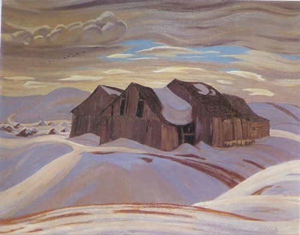 A.Y. Jackson’s "Valley of the Gouffre River" is a painting about the North, painted with oils, presumably on canvas. Jackson’s marks are all about rhythm and flow, capturing the rolling hills of snow with a kind of patterned brushwork. It’s like he’s not just painting what he sees, but also the feeling of the land, a real sense of place. Look closely, and you can see how the colors aren’t just white but include yellows, blues, and pinks. These hues create a visual hum, bringing warmth and depth to the cold landscape. There's this one spot near the bottom left, where the snow catches the light just so, and Jackson captures that glint with these quick, confident strokes. You can see the thickness of the paint there, almost sculptural, which adds a kind of playful materiality to the scene. The whole piece makes me think of Lawren Harris, another member of the Group of Seven, but Jackson is a bit more grounded, less mystical. He reminds us that painting is a conversation, an ongoing exchange of seeing and feeling.