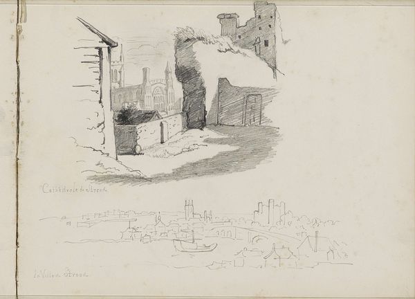 Curator: Willem Cornelis Rip created this piece, "Huifkar op een Straat," sometime between 1914 and 1916, using pencil and pen on paper. It's a quick impression of a city scene. What's your first take? Editor: It feels fleeting, like a memory fading at the edges. The sketchiness imparts a dreamlike quality. There’s a strong reliance on diagonals creating this sense of movement—are we to think of the constant flux and flow of life in urban spaces? Curator: Possibly, given the historical context. Early 20th-century art grappled intensely with the changing social fabric. Industrialization brought rural populations into the city, leading to new socio-economic divides. Do you find that the marks evoke particular emotions, or do they create meaning in other ways? Editor: I’m drawn to the symbol of the carriage itself, a mode of transport being phased out by this period yet present here. What did carriages signify then, in this time of transition? It represents the past, and possibly class division, when contrasted against the electric lampposts in the background. It creates a stark juxtaposition between tradition and modernity. Curator: That's insightful. These contrasts do make one wonder about the artist’s intentions, or perhaps the socio-economic anxieties being registered unconsciously on paper. This being a sketchbook piece, one could see this less as a formal statement and more of a spontaneous record. What do you think? Editor: That seems valid. I’m struck by how even with minimal lines, Rip managed to capture a sense of depth. The layering of sketched figures builds an intimate, vibrant scene—like peeking into another’s consciousness. It reminds us that sketchbooks serve as windows into the artist’s world. Curator: And into ours, through the visual traces that linger. It reminds us that even rapid impressions carry traces of deeper anxieties and societal transformations. Editor: It certainly reframes how we understand historical artifacts; sometimes, it's not what's there but how it's shown.