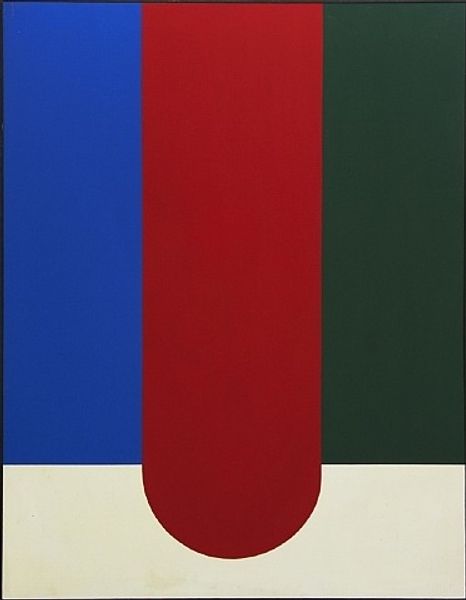 Editor: Here we have an untitled acrylic painting by Verena Loewensberg from 1981. It features bold geometric shapes, primary colors intersected by a large white parallelogram. The balance and simplicity are striking... What do you see in this piece, and how does it fit into the larger art historical context? Curator: Well, looking at Loewensberg’s “Untitled”, one is immediately reminded of the concrete art movement, particularly its engagement with geometric abstraction as a form of universal visual language. The hard-edged forms and pure colors reflect a utopian impulse – a desire to create a rational, harmonious world through art. Consider how this aesthetic emerged in the wake of profound social and political upheaval; does this strive for order resonate in our contemporary context? Editor: That's interesting. It seems so... calculated, I guess. Almost detached from emotion, which, thinking about it, is a very particular choice. But was it actually universally accessible? Or did its appeal primarily stay within a specific intellectual and social class? Curator: Exactly. The question of accessibility is crucial. While concrete art aimed to be universally understood, its reception was often shaped by existing cultural capital and education. Who had the privilege and the language to truly engage with this seemingly ‘pure’ form of abstraction? How do power dynamics and access to cultural institutions affect art interpretation? Editor: So even in its simplicity, it still sparked discourse of accessibility and inequality within the art world? Curator: Absolutely. The beauty of a piece like this lies not just in the aesthetic experience, but in the layers of meaning and the social questions it provokes. The apparent neutrality is not neutral at all. It is important to constantly question these aesthetic choices and understand what historical and social messages that they are imbedded within. Editor: I see it completely differently now! Thanks, this really broadened my perspective on Concrete Art. Curator: It's about continually digging beneath the surface, isn't it? It really is a testament to the power of art and its profound influence on historical understanding and the importance of engaging in conversations with diverse points of view.