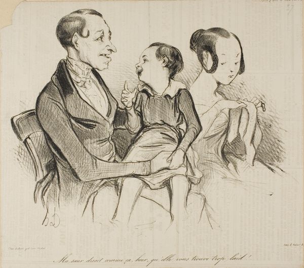 Curator: This is John Singer Sargent’s "Two Women with Children," a sketch held at the Harvard Art Museums. Editor: It feels so immediate, doesn't it? The quick, searching lines create a sense of arrested motion, like a fleeting glimpse. Curator: Yes, Sargent was a master of capturing ephemeral moments. Motherhood, across cultures, is often depicted as an idealized, serene state. Here, though, we sense the energy and perhaps the slight chaos of caring for small children. Editor: The composition, too, is interesting. The figures are grouped closely, almost merging together. It emphasizes the bond between them, but also creates a sense of confinement. Curator: Precisely, and in that huddle is an echo of Madonna and Child imagery that has permeated Western art for centuries, but softened, made domestic. Editor: It's fascinating how much emotion he conveys with so few lines. Such depth and a sense of narrative captured in this simple sketch. Curator: Indeed. Sargent's skill lies in distilling complex emotions into their purest visual form. Editor: A truly resonant piece.