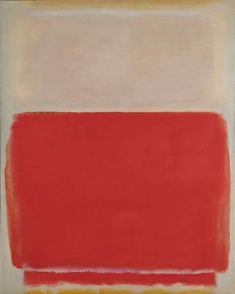 Editor: This is an "Untitled" oil painting by Mark Rothko, created in 1968. I'm immediately drawn to the materiality, those layers and the visible brushstrokes give a certain depth to these otherwise simple shapes. What are your initial thoughts when you look at it? Curator: I find it fruitful to examine the economic and social factors involved in the creation and reception of a work like this. Consider the materials themselves: oil paint, canvas. These weren't always readily available or affordable. Who had access to them in 1968? And how does that access shape the artistic landscape? Editor: That's an interesting perspective. I tend to focus more on the pure aesthetics. Are you saying that our understanding is affected by the access to and availability of the materials? Curator: Absolutely. Rothko’s choice of oil, for instance, situates him within a lineage of Western painting dominated by a particular class structure. The very act of applying pigment to canvas, in the way that he does, can be seen as a comment on – or a perpetuation of – that history. And look at the scale of some of his works, and the labour involved in applying layer upon layer to build up such a surface texture. The value that the art world places on painting is intimately connected with the time and skill it requires to create paintings. Editor: So, by focusing on materials and production, you’re seeing this as less of a purely expressive gesture and more as a… product of specific economic conditions? Curator: Precisely! To truly appreciate Rothko, we need to think about the labour involved, the resources consumed, and the systems that made its existence possible. It challenges the common notion of Rothko being primarily about the emotional or the spiritual, it grounds his art in material reality. Editor: I see what you mean. I hadn’t really considered the economic side before, and I am now intrigued about considering the implications behind art's means of production. Thanks for this illuminating view! Curator: It highlights the ways art objects become embedded in material processes of consumption and value, that in turn contribute to the object's value in social discourse.