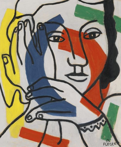 Editor: We're looking at Roy Lichtenstein's "Study for 'Expressionist Head'" from 1980. It's a coloured-pencil drawing. The geometric shapes and clashing colours are…jarring. I'm not sure I "get" it. How do you interpret this work? Art Historian: It’s interesting you say that. Lichtenstein, often associated with Pop Art's embrace of mass culture, is here engaging with Expressionism. Considering Expressionism as a historically loaded term—linked to intense emotional expression and even, problematically, national identity—what happens when Lichtenstein, the Pop artist, flattens and simplifies those historical ideas? Editor: So, it's a commentary? On the art world? Art Historian: Precisely. Lichtenstein frequently questioned originality and authorship in art. This "Study" is almost a caricature of Expressionism. By rendering emotional expression through a detached, commercial aesthetic with simple blocks of colour and rudimentary lines, he challenges our understanding of artistic sincerity and emotional depth. Is this a respectful homage, or something more cynical? Editor: It’s cynical, definitely. Almost poking fun at Expressionism’s intensity by reducing it to basic shapes and colours. Were these studies intended for anything beyond being studies? Art Historian: That’s a crucial question. Was it meant for a larger painting, or something else entirely? Thinking about it as a ‘Study,’ it allows us insight into Lichtenstein's process. Was he deconstructing artistic movements, repackaging emotion for mass consumption, or perhaps, finding new ways for those old artistic movements to be accessible? What do you think? Editor: I now think the "jarring" effect isn't a bug, but a feature. He’s taking something serious and making it… not serious, without entirely negating it. Thanks, I'm viewing this work in a new way! Art Historian: Absolutely. Seeing art as participating in larger cultural conversations is enlightening, and this study proves just that.