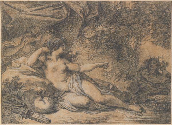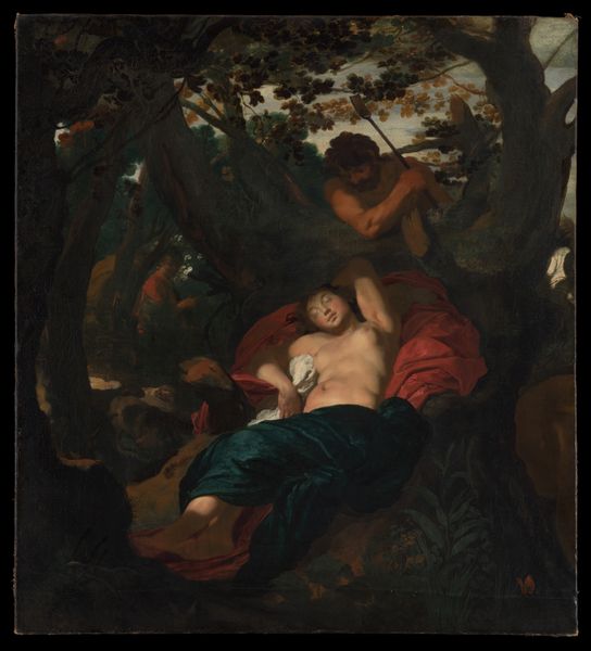 Jan Linsen’s oil on canvas, "The Death of Procris," presents a dramatic scene dominated by a stark contrast between light and shadow, setting a somber tone. The figures are positioned within a landscape where the dark, looming cave contrasts with the distant, bright horizon. Linsen masterfully uses chiaroscuro to highlight the emotional intensity of the moment. The dramatic lighting not only emphasizes the figures but also serves to dissect the scene into contrasting emotional and narrative elements. The formal structure supports the narrative, creating a visual language. The use of light and shadow invites viewers to ponder the nature of visibility and concealment, truth and deception, reflecting a broader philosophical interest in questioning established narratives and exploring the ambiguities inherent in human experience. Art does not offer fixed meanings but invites ongoing interpretation.