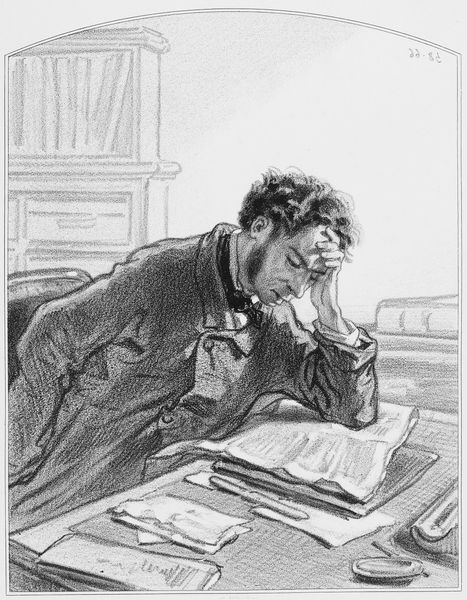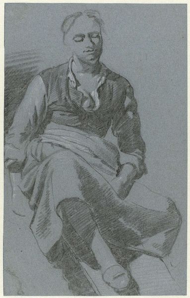 Curator: This charcoal drawing by Theodor Severin Kittelsen depicts an elderly man in profile. It's currently titled "Untitled," so its original intention remains a mystery. Editor: It strikes me as an intimate portrayal. There's a weariness etched into his posture, and a quiet dignity too. Curator: The material execution here is key, isn't it? The artist uses charcoal to render the man's coat in heavy, almost sculptural strokes, which contrasts with the softness of his beard and hair. One can almost feel the texture of the fabric and the weight it would have held. Editor: Absolutely. The sitter's garment isn't merely clothing, it speaks to class, labour and even societal role, but this figure is not caught up with external performance of social mores. What did labour look like for people in Kittelsen's circles, and what was its material culture? His drawing raises important questions about how labor and leisure were expressed at that moment in the world. Curator: And that's where context is so essential. If this were a preparatory sketch for a painting or illustration, would our approach change? Considering the cost of artistic materials – the charcoal, paper, even the access to a sitter – offers insight into the art-making process of the time and the status of artists. Editor: Indeed, access itself becomes a subject. We need to explore the dynamics of the relationship between artist and sitter. Who was this man, and what power dynamics were at play in the act of portraying him? What implications can be made in viewing the "untitled" status of the drawing in the artist's wider work? Curator: By observing the choices made by Kittelsen, we uncover not just skill, but decisions about representation. Decisions related to what—or rather, whom—to portray, and how, both elevate and potentially obscure meaning. Editor: Which ultimately points towards its fascinating power—it leaves us lingering with complex considerations around history, production, and representation.