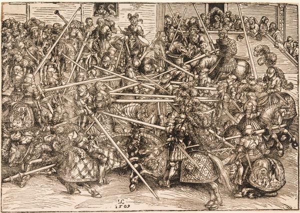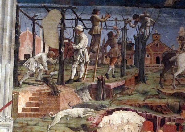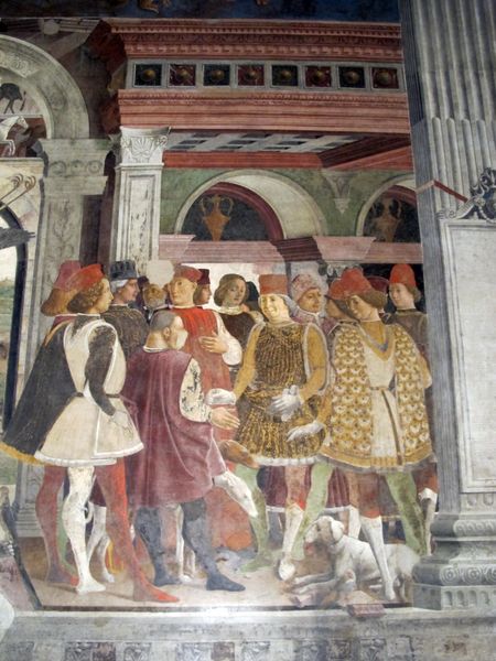 Curator: What strikes me immediately about Antoniazzo Romano's fresco cycle "Stories of the Holy Cross", created around 1492, is the rather muted palette for a scene ostensibly full of triumph. Editor: Yes, I'd agree. There's a somber tone that seems to belie the purported narrative of the Holy Cross. What draws my attention is the materiality. Look at the pigments; they seem earthly, bound, and deliberate—the muted ochres, the washed blues… these are not luxury materials signaling immense power. The artist had to source those materials. Who processed them? For what wages? Curator: Right. Situating it in its context is important: we must remember the fresco comes from a time of deep religious and political transformation. Think of Savonarola's fiery sermons and challenges to Medici rule—Antoniazzo, though part of the Roman school, may have felt these undercurrents influencing even this ostensibly pious work. How does this possibly demonstrate shifts in social power during the Quattrocento? It’s complex because the narrative ostensibly supports the existing power structure of the Church. Editor: Perhaps by examining the fresco itself, we can trace material agency. The fresco technique, while durable, required specific kinds of lime plaster and mineral pigments. These are very particular kinds of skill sets in order to have these works produced on this scale and that denotes material support, and ultimately reflects patronage with the Catholic Church and Papal authority that goes hand-in-hand with social control. It emphasizes not only devotional imagery but also tangible, labor-intensive craft to reinforce a visual narrative that's very tactile. Curator: It's so much more than the literal representation. It represents the intersection of spiritual power, cultural identity, and gender—how are women participating, and how are they represented within these stories, both historically and within the pictorial narrative constructed here? The artist constructs it that women’s agency can also be debated by modern sensibilities in the art production from the period and the artist's individual intent. Editor: And when we consider the physical act, we begin to question who are the figures represented. What choices went into constructing these historical narratives within such specific material constraints that must shape this moment, this intersection of meaning and medium in powerful ways? Curator: Absolutely. Approaching the work through these multiple perspectives gives us an even better understanding of Renaissance culture. Editor: Precisely; from pigment to power, it is the layering of social and material factors in their entirety to truly reveal and inform on cultural works that are lasting today.