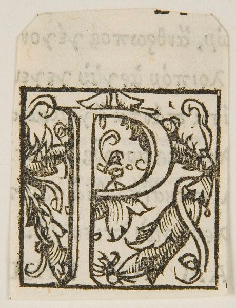 Editor: This is Letter P, by an anonymous artist. The linework creates a very decorative feel to something as simple as a letter. What do you see in the composition? Curator: I notice the interplay between positive and negative space. The black ink defines the letterform and the surrounding organic shapes, but the white space within these elements is equally crucial. It guides the eye and creates a sense of balance and visual interest. Editor: So the shapes within are just as important as the letter itself? Curator: Precisely. Consider how the curving lines and leaf-like motifs echo the shape of the "P," creating a cohesive visual language. Notice also the density of detail versus the plain background. Editor: It's amazing how much can be analyzed in such a small piece! Curator: Indeed, even a seemingly simple design reveals layers of complexity when we examine its formal elements closely.