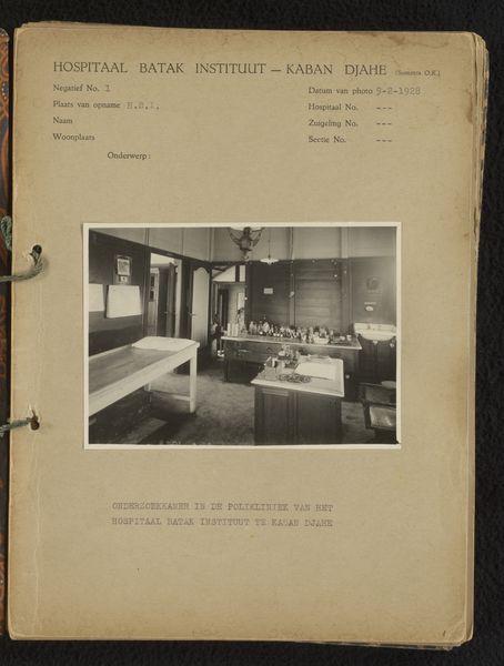 This photograph, taken by the Hospitaal Batak Instituut in 1928, captures the inside of a minor operating room. The composition is quite simple, a direct shot, but it speaks volumes about the intersection of care, architecture, and documentation. The monochrome palette invites us to consider the textures and surfaces within the room. The surfaces of the cabinets feel utilitarian. The operating table looks freshly scrubbed and ready for use. The photograph is sharp but the greyscale flattens the image making the viewer aware of the materials in the room. These choices add to a conceptual idea of the room. The composition reminds me a bit of Bernd and Hilla Becher, whose photographs of industrial structures embrace a similar deadpan aesthetic, elevating functional objects to a kind of austere beauty. Like their work, this image offers a unique perspective on the built environment and its relationship to human activity, leaving space for the viewer to contemplate the meaning behind its objective portrayal.