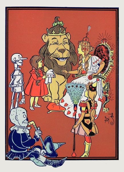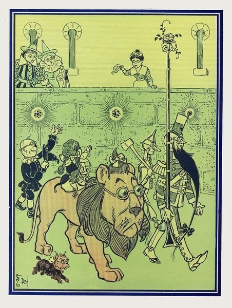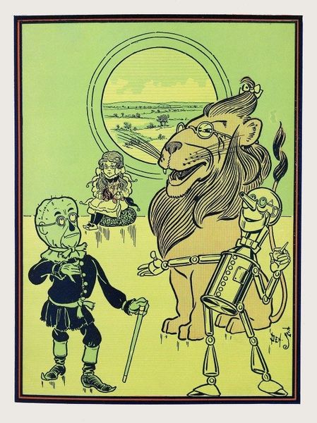 William Wallace Denslow created this illustration for "The Wonderful Wizard of Oz". Published in 1900, it reflects the anxieties and aspirations of its time. Denslow's image captures a pivotal moment: Dorothy's encounter with the Cowardly Lion, subdued by winged monkeys. But what does it mean to depict a lion – traditionally a symbol of courage and royalty – in a state of captivity? The Lion's bondage could be seen as a metaphor for the constraints placed upon individuals by societal expectations and the struggle to overcome inner fears. Dorothy, a young girl, stands before the lion, an implicit commentary on power dynamics, vulnerability, and the potential for empathy to bridge divides. Denslow's illustrations broke from traditional children's book imagery, mirroring the era's shift toward a more modern, visually engaging storytelling. He encourages us to reflect on the multifaceted nature of identity, courage, and the quest for self-discovery, reminding us that appearances can be deceiving.