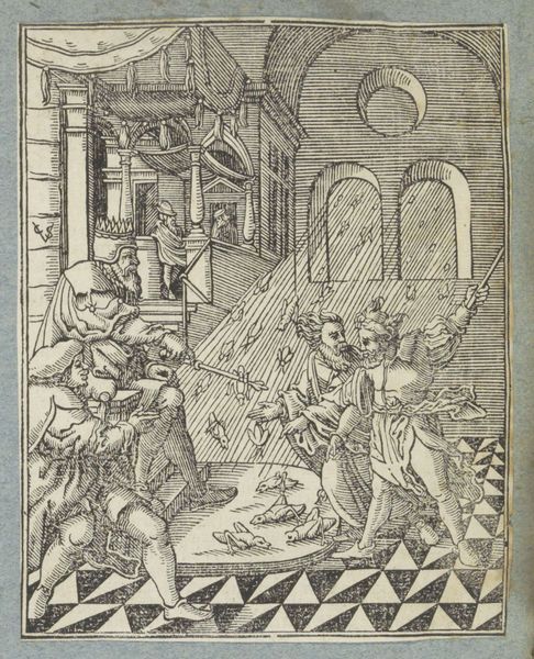 Christoffel van Sichem II created this woodcut depicting "The Judgement of Solomon." At first glance, the composition is dominated by strong vertical lines and a dramatic contrast between light and shadow. Look at how the dense, parallel lines create depth and texture, drawing our eyes to the central figures. The artist uses these visual elements to explore themes of power, justice, and deception. Consider how the sharp lines and stark contrasts emphasize the tension of the moment, underscoring the precariousness of life and the gravity of Solomon's judgement. The intricate details and the dynamic arrangement of figures, destabilize established meanings, inviting viewers to question the nature of truth and the complexities of human relationships. The high contrast of the woodcut serves not only an aesthetic purpose, but also as a commentary on the clarity and opacity of justice, an invitation to reflect on how we interpret signs and make judgements in our own lives.
