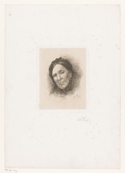 Piet Verhaert created this etching, "Head of an Old Woman with Hood," without a specified date. The image evokes both the immediate appearance of an individual, and the broader social context of labor and aging in the late 19th century. The lines of the etching create a sense of the woman's worn features, her gaze suggesting a lifetime of experience, while the hood itself, a visual code of the working class, hints at a life exposed to the elements. Made in Belgium, the image resonates with a period of industrial expansion and social change, where class identity was clearly demarcated. To fully appreciate Verhaert's work, we can consult the records of art academies, exhibition catalogs, and period publications. These help us understand the institutions and social conditions that shaped his art. They are also necessary to explore how Verhaert challenged or reinforced social norms through his depiction of working-class subjects.