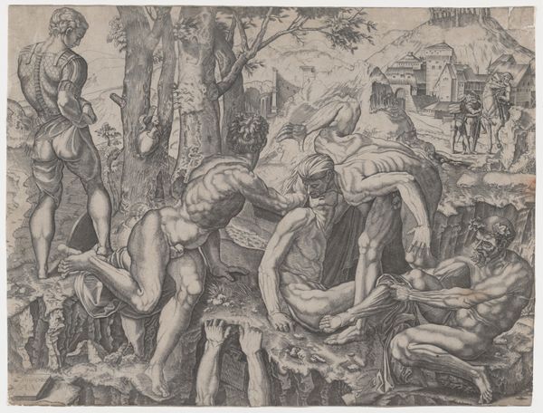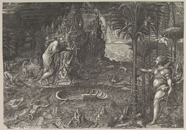 "Christ Tells His Disciples of the Last Judgment" is a print made by Christoph Murer around the late 16th or early 17th century. Murer, situated in a time of religious and political upheaval, employs the woodcut technique to bring biblical narrative to life. This work invites us to consider the narratives of judgement and morality during the Protestant Reformation. We see a dense, almost claustrophobic forest scene, where Christ is seemingly warning his followers of the impending Last Judgement. The emotional weight of the scene is palpable - the prone figure in the foreground may represent humanity facing divine reckoning. It's also interesting to think about how Murer uses the visual language of his time to convey spiritual ideas. Notice the clothing and the setting - how do these details shape our understanding of the scene? What does it mean to depict a biblical story in this way? In considering these questions, we might reflect on our own expectations, and how this piece resonates with or challenges those expectations.
