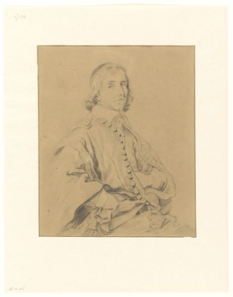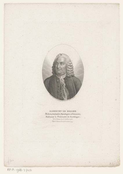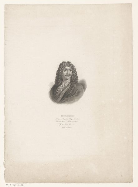 Curator: Immediately, the shading creates this ethereal quality. The man almost seems to float on the page. Editor: A romantic air, indeed! We’re looking at "Portret van Adam Billaut," an engraving executed by Nicolas Maurin sometime between 1825 and 1842. Billaut, a relatively obscure figure now, was a 17th-century French carpenter who became known as a poet. Curator: Carpenter-poet, that’s compelling! The contrast of the subject's presumed social standing with this very refined artistic treatment... was that intentional? It strikes me as a fascinating social commentary. Editor: In its own way, yes. The availability and relatively low cost of engraving facilitated the broader dissemination of images. By choosing engraving to create and circulate Billaut's image, Maurin democratized his likeness, challenging artistic conventions which, until then, limited portraits mostly to the elite. Curator: I'm drawn to the texture. The gradations achieved purely with pencil are incredible, aren’t they? Notice how the ruff around his neck almost looks like delicate lace. It speaks to an incredible mastery of the medium. I’m thinking of the training, the apprenticeship behind this... Editor: Precisely. Consider how Maurin utilizes hatching and cross-hatching to build up tone and volume, simulating the effect of light and shadow. This labor-intensive method really underscores the value placed on artistic skill. Curator: It feels important, too, that this portrait exists so long after Billaut’s death. What need did this image fulfill in 1825-1842, the era it was created? What significance did Billaut hold? Editor: Billaut represents, I think, a particular idea that gained momentum throughout the Romantic period – the appreciation for the individual, irrespective of noble lineage or traditional measures of success. And that resonated deeply within broader French society. Curator: Yes. A lasting image created from a rather unassuming medium to convey such resonant values! Editor: An intersection of material, labor, and lasting legacy. It certainly invites more questions than answers.