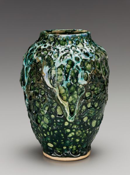 This vase was crafted by George E. Ohr, a potter active at the turn of the 20th century. Ohr’s radical approach to ceramics challenges our understanding of the vessel. Here, the vase form, historically associated with containment and stability, is distorted. The fluid lines and undulating surface evoke dynamism and change. One might draw a parallel between this surface and the ancient motif of flowing water, seen across cultures from the Nile to the Ganges, symbolizing life and purification. However, Ohr's treatment is far from traditional. The controlled chaos of the glaze, the unpredictable folds, and the precarious balance elicit a sense of unease, a departure from the classical harmony we might expect. This can be compared to the Baroque era's taste for movement and heightened emotionality. The tension between form and fluidity, control and chance, engages us on a primal level, stirring deep-seated associations with the earth, transformation, and the precariousness of existence. We are reminded that symbols are never static; they constantly evolve, reflecting the anxieties and aspirations of the human soul.
