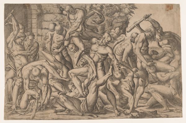 Heinrich Aldegrever crafted this engraving, “Hector Fighting the Greeks,” capturing a frenzied clash of bodies and blades. Here, the symbol of conflict is laid bare, as the figures of Hector and his adversaries become entwined in mortal struggle. Note the motif of the hero in conflict, a powerful figure amidst chaos. Such images resonate across time, from the classical friezes depicting the battles of gods and giants to the Renaissance paintings of heroic martyrdom. Think, for instance, of the Laocoön, its writhing figures expressing a profound sense of anguish and desperation. The raw energy and violence in Aldegrever's work tap into a deep, subconscious fascination with struggle and survival. The chaos in the composition, combined with the figures' heightened emotions, evokes a visceral response. The image of conflict, in this sense, is not merely a representation of historical events. Rather, it serves as a mirror reflecting our innermost fears, desires, and the eternal human struggle for dominance and recognition. It’s a symbol that continually resurfaces, transformed yet eternally potent.