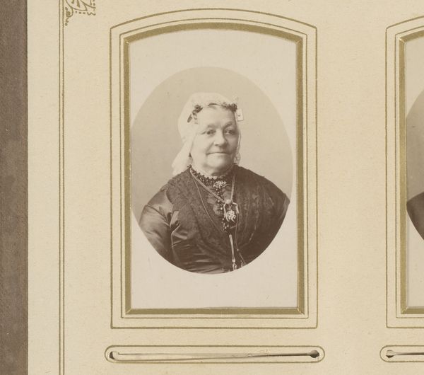 Here we see a portrait of an elderly woman, created by Thomas Martin Staas. The photograph is of modest size, and captures the sitter in fine detail, wearing a traditional white bonnet and distinctive "oorijzers", or ear irons. Considering Staas's birth in 1844, this image provides a glimpse into 19th-century Dutch society, where traditional attire signified cultural identity and status within the community. The woman's clothing and posture exude a sense of modesty and resilience. Her lined face and aged hands speak to a life of labor and experience. As a woman during this era, her identity would have been closely tied to her domestic role and community standing. While the photograph may seem like a simple portrait, it encapsulates the complex intersections of gender, age, and cultural identity. It invites us to reflect on the lives of women who are often overlooked in historical narratives, while also reminding us of the powerful ways in which clothing and appearance can communicate identity and belonging.