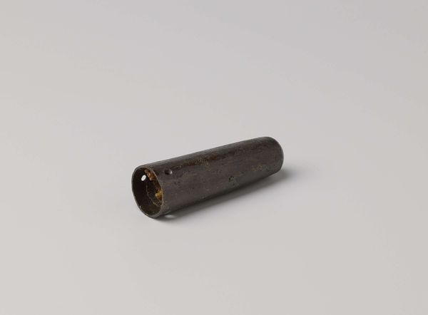 This 18-cm Canister Shot was created by the Royal Laboratory. The object has a cylindrical structure in dark color which is offset by some areas that have peeled paint and the light background. The overall form, while simple, evokes feelings of weight and industrial purpose. Consider the canister's structure. The cylinder, an inherently stable form, is topped with handles, suggesting both its functionality and its potential for movement and deployment. Its dark color and weathered texture give it a raw, utilitarian aesthetic. This object transcends its immediate function, inviting questions about its role within a broader historical and social context. The canister acts as a signifier, hinting at the complex interplay between military technology, state power, and human conflict. Understanding it requires us to consider how objects can embody and transmit ideologies. The canister represents a nexus of history, power, and materiality. It is up to us to continue interpreting its place in our understanding of historical narratives.