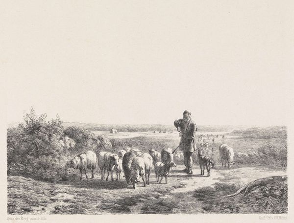 Editor: We are looking at Nils Kreuger's "Noon," painted around 1900. It’s rendered in blacks, whites and grays with visible strokes, likely oil or pastel on canvas, and presents a landscape scene with grazing horses. The tonal range creates quite a somber atmosphere. What strikes you when you look at this artwork? Curator: Ah, "Noon"—though, I'd be tempted to call it "Twilight's Promise." The monochromatic palette lends a certain timeless quality, doesn’t it? But it's more than just a landscape; it’s an emotion made visible. Do you get the sense of longing when looking at those figures on the horizon? Like souls adrift... Editor: Yes, actually, now that you mention it, the small human figures in the distance give it a melancholy feel. How much of that interpretation do you think comes from our contemporary perspective, knowing what was brewing in Europe around that time? Curator: That's the delightful dance, isn’t it? Context whispers, but the painting roars with its own intent. Perhaps Kreuger felt that unrest, that brewing storm. Maybe he's channeling a feeling about nature… a melancholic mood through the simplicity of rural life… but let me ask you, what about the almost ghostly light? Doesn’t it hint at something just beyond our grasp? Editor: It really does create an ethereal vibe, softening the entire composition. I see your point, the absence of colour definitely pushes it beyond just a representation of a landscape. It becomes more about capturing a feeling. Curator: Exactly! And that, my dear friend, is the alchemy of art. Turning visual information to pure feeling... Something that goes straight to the bones and creates echo... Isn't it marvelous? Editor: It is. I walked in with certain ideas but learned the image does invite deeper musings. Thank you!