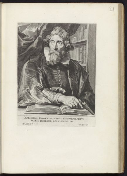 Editor: This engraving, "Portret van Cesare Alessandro Scaglia," possibly from between 1630 and 1646, is quite striking. Created by Paulus Pontius, there's something about the detail achieved through the engraving process itself that's impressive. How do you read this work, particularly considering the materials used and their cultural context? Curator: I see this engraving as a product of its time, deeply rooted in the socio-economic structures that enabled its production. The aged and toned paper, along with the engraving technique, tells us a lot about the labour involved in creating multiple images. Consider the copperplate, the skill of the engraver, and the role this print played in disseminating images of power. Editor: That's interesting. So, you're emphasizing the means of production over, say, the sitter's identity or the artistry on display? Curator: Not exclusively, but significantly. While it is indeed a portrait of Cesare Alessandro Scaglia, consider the economic transactions facilitated through these printed images. Prints like these served a purpose beyond mere aesthetics; they acted as a form of currency in a way, reproducing and distributing power, literally transferring wealth and prestige to a wider audience through material culture. The labour and material afford a perspective into society, don’t you think? Editor: I do now. I was initially focused on it as an artistic object. I had not even considered the societal functions of reproducing images in multiples and how prints support the social environment where people could build, transfer, and accumulate wealth, by recording images that become themselves tradable commodities. Curator: Precisely. By viewing art through the lens of its production and consumption, we unlock a deeper understanding of its role within a given society.