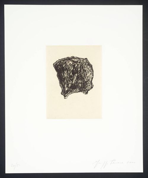 Curator: This intriguing print is by Giuseppe Penone, an Italian artist born in 1947, and is held within the Tate Collections. Editor: It’s incredibly delicate; the textured surface of the leaf almost feels like a topographical map in monochrome. Curator: Penone’s practice is deeply embedded in Arte Povera, emphasizing the process and natural materials. Editor: Right, he transforms commonplace materials into resonant forms, blurring boundaries between art and the everyday. How do we think this piece fits into the lineage of botanical illustration? Curator: The way the leaf is rendered, almost like a fossil, speaks to the passage of time and humanity's intervention. Editor: I find it compelling how such a simple form can evoke complex ideas about nature and our relationship to it. Curator: Absolutely, a profound statement conveyed through minimalist means. Editor: A powerful reminder of the beauty and fragility inherent in the natural world.