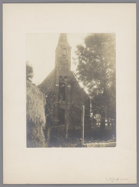 This photograph of the facade of the Reformed Church in Hulst, probably shot for historical documentation, is from a series of such works by an anonymous photographer. The sepia tones really pull you in, right? It's like stepping back in time, and you almost feel the grainy texture of the old paper. The facade is photographed straight on, emphasizing the symmetry. There's something so simple, yet powerful, in the way the brickwork is rendered. Look at the area around the windows. The light catches the edges of the brick, giving them a soft glow. And notice how the photographer captures the subtle variations in tone, from the lighter parts of the building catching sunlight to the darker, shadowed areas, giving a sense of depth. The natural world pushes in at the sides as well, suggesting the encroachment of nature on these buildings. It reminds me a bit of Bernd and Hilla Becher's photos of industrial structures, that same focus on form and documentation. But unlike the Bechers, this image has a warmth to it, maybe it’s that sepia tone, inviting you to imagine the stories within its walls.
