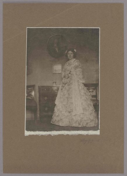 This photograph depicts Julie Clémentine Catherine Jouassain in costume as Belise from Molière's play "Les Femmes Savantes". Though the artist is unknown, the image provides a window into 19th-century French theater and society. Julie Jouassain's portrayal of Belise offers a lens through which to examine the era’s complex relationship with women, performance, and intellectualism. "Les Femmes Savantes" satirizes intellectual pretension among women, and here Jouassain embodies this character. The photograph encapsulates a moment where gender, class, and culture intersect on the stage and in the studio. Consider what it meant for a woman to perform a role that mocked female intellectual pursuits. Jouassain’s costume, while elaborate, is part of a narrative that both showcases and scrutinizes women's roles in society. The image prompts us to reflect on how women negotiate identity, perception, and expectation.