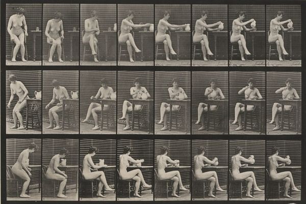 Eadweard Muybridge made this composite photograph of a woman getting into bed in the late 19th century using a groundbreaking method of serial photography. It was not traditional artistic materials he was engaging with but photographic technology in its infancy, developed for scientific study rather than artistic expression. Each frame captures a discrete moment, and when viewed together, they reveal the mechanics of human movement. Note how the material of photography renders the nuances of texture, light, and shadow, capturing the drape of fabric and the contours of the human body. Muybridge's work has social significance as part of the larger Industrial Revolution era. The rise of scientific management and Taylorism viewed the human body as a system of parts, as the human body was being integrated into factory production lines. Muybridge's images have been used to increase worker efficiency by breaking down and analyzing a person's movements to determine the most effective method to execute each action. By attending to the materials and modes of production, we see how this work can challenge distinctions between art, science, labor, and industry.
