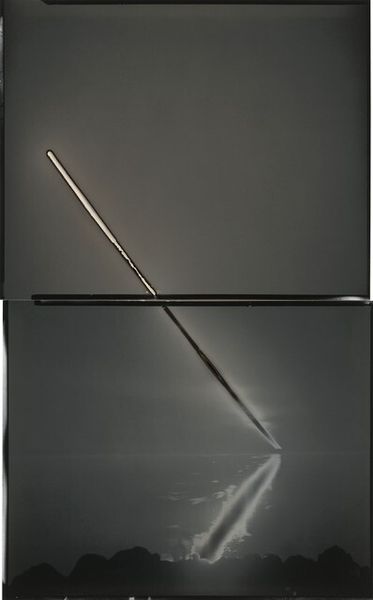 Chris McCaw created "Sunburned GSP #541 (Galapagos)" using a gelatin silver print, a technique he transforms through direct solar intervention. At first glance, you're met with a subdued palette, where shades of gray dominate, suggesting a landscape barely emerging from darkness. A vertical line pierces the composition's center, searing through the photographic surface. This isn't mere representation; it's an indexical trace of the sun's raw power. The line, almost violent in its intensity, destabilizes the traditional landscape, turning it into a canvas of action. McCaw doesn't just capture an image; he subjects the photographic material to a durational performance, allowing the sun to directly alter the print. The photograph thus becomes a physical record of time and energy. The "sunburn" acts as a signifier, pointing to the absent yet powerfully present force that shaped it. This work challenges our understanding of photography as a medium of reproduction, instead presenting it as a site of transformation and material encounter.