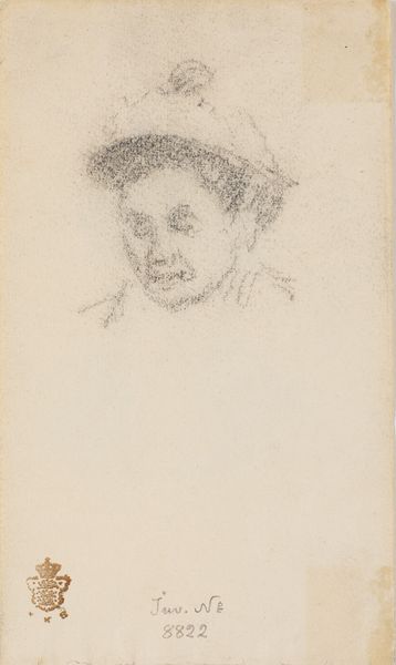 Editor: This is Otto Scholderer’s “Brustbild einer Dame mit Hut,” or “Bust of a Lady with a Hat,” a drawing on paper held at the Städel Museum. It feels intimate, like a fleeting glimpse into a private moment. What can you tell me about its historical context? Curator: This drawing offers insight into the social conventions surrounding portraiture, particularly concerning representations of women in the late 19th century. Portraits were often commissioned to signify status and familial legacy. This quick sketch departs from that tradition, no? Editor: Yes, the spontaneity differs from commissioned work. Why do you think Scholderer created it? Curator: Consider the rise of Impressionism and its focus on capturing fleeting moments. Could this sketch reflect a shift towards a more informal and personal representation, challenging the established norms of academic portraiture? Where does this leave the female sitter herself, considering how male artists frequently portrayed them? Editor: That’s interesting. So, the context in which the image was created shaped our understanding of not only the artist, but the sitter and her position as well. Thank you! Curator: And you made me rethink how swift sketches like these democratize portraiture. Thanks to you, too!