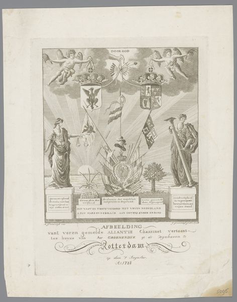 Editor: So, here we have "Welcome to the Prince of Wales," an engraving, woodcut, and drawing all rolled into one image from 1860 by Winslow Homer. It’s quite detailed for a print! I’m struck by how it shows two very different receptions - one "rolled out" and the other… not so much! What's your take on the meaning here? Curator: Ah, yes, quite the commentary, isn't it? Winslow Homer wasn't just documenting; he was judging, or at least playfully observing, the contrasts. Consider the political climate - tensions between America and Britain were… thick, like gravy, shall we say, around this time. The Prince’s visit was intended as a smoothing-over gesture, and the image implies… differences. See the top vignettes labeled “Washington” and “Canada.” Any thoughts about how Homer portrays the reception on either side? Editor: Well, in "Washington" everyone seems rather stiff, with only one lady approaching to welcome the royal, while in "Canada", a brawl is in progress, even if one person did fall prostrate before him! Is it some criticism, or perhaps ironic humor? Curator: A bit of both, I'd wager! Remember, Harper's Weekly, where this appeared, had a strong readership, keen on satire. It seems he captured a sense of divided sentiment towards the Crown. The gathered crowd looks very solemn with small expressions… almost waiting… Do you think the 'Welcome' at the bottom feels…entirely genuine? Editor: Now that you mention it, the "Welcome" does feel a little forced somehow. Like everyone’s on best behavior, whether they want to be or not. It sounds as if the trip of goodwill could not patch things up too soon! Curator: Exactly. And that’s Homer's brilliance, isn't it? Subtly hinting at deeper currents of sentiment bubbling beneath the surface. The world’s stage presented as comedy with a message. Editor: That makes me see this as much more than a historical record - it's a playful commentary on international relations. Curator: Indeed! It certainly leaves one thinking about the ways artists reflect, and even shape, our understanding of historical moments, using just ink and wit!