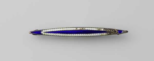 Editor: So, this piece is called "Brochette van goud met koraal," which I believe translates to "Gold and Coral Brooch," made sometime between 1874 and 1894. It’s a delicate piece, mostly gold filigree with these smooth coral orbs evenly spaced. I’m immediately struck by the almost… preternatural balance of the composition, the careful arrangement of each element. What symbols or deeper cultural associations resonate with you when you see this piece? Curator: I see layers upon layers, actually. Gold, universally, speaks of status, wealth, and often immortality. The coral, however, brings a more nuanced element into play. Historically, coral has been imbued with protective qualities. Consider its vibrant color; across cultures, red symbolizes life force, vitality, and even warding off evil. It’s a potent visual language, wouldn't you agree? Editor: Absolutely. It makes me wonder about who might have worn this piece. Was it strictly ornamental, or did it carry deeper significance? Curator: I suspect, it held both personal and cultural meaning. Given its likely time period, this piece may have acted as an amulet as much as an adornment, signaling social standing while quietly promising protection. Think about the Victorian era's penchant for sentimentality in jewelry, of encoding hidden messages through gemstones and motifs. Does that resonate with you? Editor: It does. The combination of status and safeguarding makes me think about how people’s anxieties were expressed through fashion. This seemingly simple brooch becomes this complex layering of meaning. Curator: Precisely! The continuous golden thread almost weaves a narrative around each coral bead, turning them into focal points, and ultimately protecting the wearer with a gentle hum of well-being. That constant interplay, the seen and unseen...that is what makes this brooch such a beautiful object to contemplate. Editor: I learned something new just looking at it from a different lens! Thank you for the detailed interpretation!