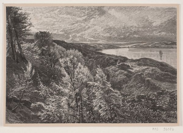 Editor: This is "Meeting of the Shenandoah and Potomac at Harper's Ferry" by James Gardner, created in 1865 using the albumen print technique. It is a melancholic scene. How can a photograph be simultaneously serene and industrial? What strikes you most about its formal elements? Curator: Observe how the artist uses the albumen print's tonal range to define form. Note the interplay of light and shadow. It almost creates a textured topography in a limited palette. How does this affect the composition's visual weight? Editor: It certainly balances the mass of the mountain against the collection of human-made forms near the base of the image, though not perfectly. I do see some very clear asymmetry there. What significance do you ascribe to the perspective and vantage point? Curator: From an elevated perspective, Gardner uses linear perspective to draw the viewer’s eye into the landscape. Note also the geometry, the repeating shapes of buildings, contrasted with the natural, organic shapes. Do you believe the artist wants to make any particular assertions about humanity and nature? Editor: I suppose the photograph suggests a certain harmony between human endeavor and natural landscape. While industrial interventions like the buildings and the bridge are prominent, they seem small beneath the landscape, almost reconciled with their surroundings. Curator: Precisely. A careful balance is key to our reading of this. What, if anything, have you learned that will stick with you? Editor: The value of exploring contrast—how the artist manipulated visual and material characteristics to express complex, powerful ideas, especially light. I am particularly curious about texture now. Thank you!