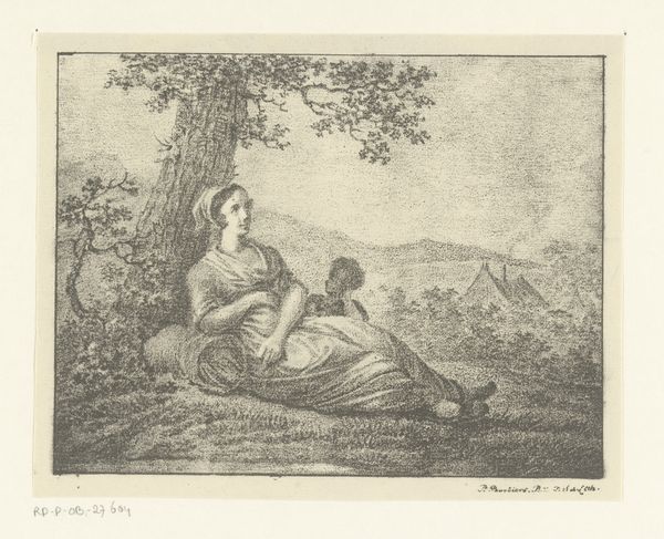 Louis Léopold Robert made this print titled *Rustende herder en herderin* – that's *Resting Shepherd and Shepherdess* – in 1831. The print is made with etching and burin, a process where the artist would have used a sharp tool to engrave an image onto a metal plate, which was then inked and pressed onto paper. Look closely, and you can see the delicacy of the lines that create the image of the shepherd and shepherdess taking a break. The printmaking process requires careful control and precision, reflecting the artist's skill in manipulating the materials to achieve the desired effect. But this isn’t just about aesthetics. The image speaks to broader themes of labor and rest, and the romantic idealization of rural life. It prompts us to consider the social context in which the work was produced, inviting reflection on how artists depict labor, leisure, and the relationship between humans and the natural world. Thinking about the print in terms of material, making, and context allows for a fuller appreciation of the artwork, moving beyond traditional distinctions between fine art and craft.
