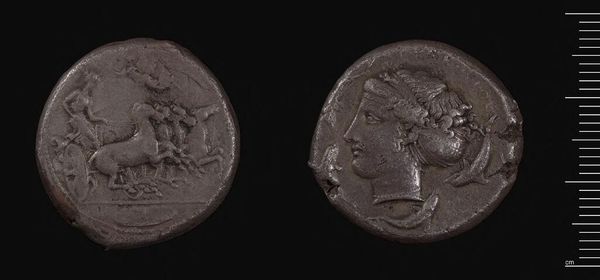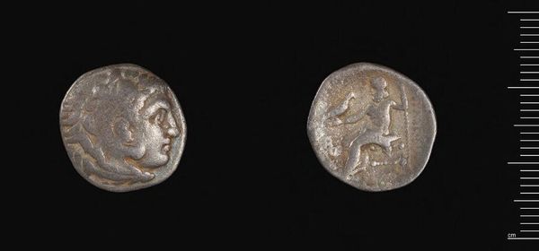 Curator: This is a drachm, thought to be from the era of Seleucus II. What strikes you about it? Editor: The severe wear and tear speak volumes; the forms are softened, almost impressionistic. One side is nearly featureless. Curator: Indeed. This coin circulated widely, bearing witness to the economic and political realities of its time. The figure is likely Apollo, a common symbol on Seleucid coinage, legitimizing power. Editor: The texture of the metal itself provides such visual interest. Notice how light glints from the high points and settles in the crevices, emphasizing its age. Curator: The imagery was a crucial component of statecraft. This coin helped unify diverse populations under a shared visual language. Editor: Its simplicity and small scale are compelling, really reflecting the power of minimalist form. I'm left considering the coin's enduring significance. Curator: Yes, these objects link us to the past.