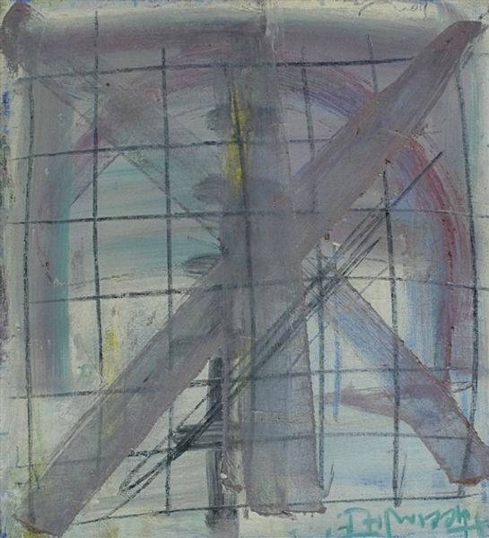 Curator: Jimmy Ernst created this piece, "Abstraction in Green and Black," in 1946. He worked with mixed media here: acrylic paint, graphite, and other elements layered on paper. Editor: My first impression is a sense of serene unease. The teal and umber hues are calming, yet the geometric forms feel unresolved, hovering between clarity and ambiguity. It is an interesting dynamic. Curator: Considering its date, this piece likely reflects the post-war experimentation with abstraction. Ernst, son of Max Ernst, may have been grappling with the changing social landscape through innovative use of media. Look at how the texture of the paper itself is integrated into the work! The subtle layering builds a material complexity. Editor: Indeed, the tension in "Abstraction in Green and Black" seems key. I see fragmented architectural motifs and vague biomorphic suggestions battling for dominance. It is as if Ernst were representing a world coming undone or a reality still cohering. Curator: The use of relatively new acrylic paint is fascinating. He harnesses the potential of acrylic to experiment with washes and linear work that almost denies the inherent weight acrylic often carries in abstract expressionism. How did this relatively new mass manufactured material influence and inspire his studio process and creative ideas, I wonder? Editor: Symbolically, the teal reminds me of the unconscious or the dream state, set in stark juxtaposition to the man-made geometric shapes and imposed architectural structure rendered in graphite and black, and the implied social spaces. Could it reflect an internal psychological conflict of structure versus dreams, maybe of reason vs. desire, a microcosm of a shifting world view? Curator: I see this work as indicative of a time when material invention, even at a domestic scale in the artist's studio, reshaped aesthetic ideas and understandings of modern experience and being. Ernst handles these elements in ways that foreground making and unmaking. Editor: Agreed, and within the fragmented lines and shapes of "Abstraction in Green and Black" are reflections of anxieties and hopes – visual echoes still resonating today. Curator: Precisely, a convergence of physical production, social change and artistic intent made palpable through the mediums and forms that defined the postwar world. Editor: In that sense, it becomes not just an abstract representation, but a kind of symbol, too: holding cultural meanings beyond pure form.