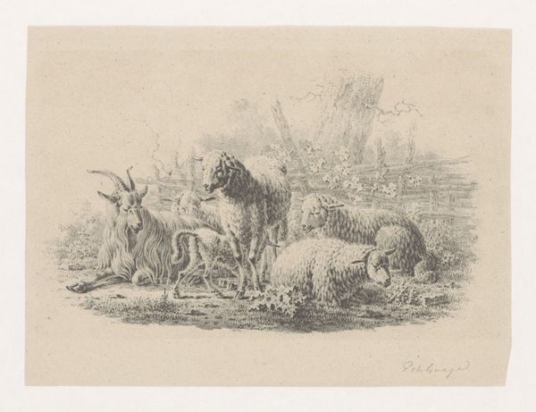 Pierre Frédéric Lehnert created this study of red deer using etching, a printmaking technique, sometime in the mid-19th century. During this period, depictions of animals and rural landscapes became increasingly popular, reflecting a growing interest in nature and the countryside. Lehnert’s detailed rendering captures the quiet grace of these creatures, highlighting their natural beauty. The composition invites us to consider the relationship between humans and the natural world. During the 19th century, social hierarchies often extended to perceptions of nature. The romanticized vision of the countryside frequently overlooked the labor and social inequalities present in rural life. Consider how the image evokes a sense of peace and harmony, yet it also prompts reflection on the broader social and environmental contexts of its time. The artist’s work encourages us to appreciate the beauty of nature while remaining mindful of the complex interplay between humans and their environment.