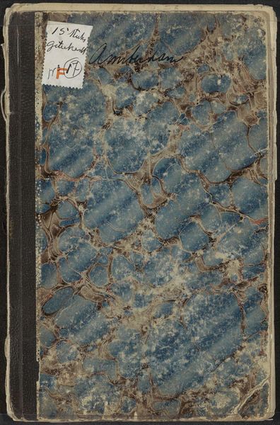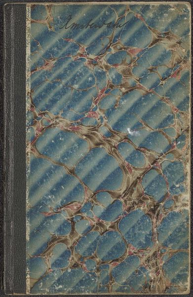 Curator: Welcome. Here we have George Hendrik Breitner’s "Sketchbook with 12 Sheets," created around 1887. It's held in the Rijksmuseum. Editor: Immediately, the cover evokes a sense of something found—organic patterns in swirling blues, browns, and creams suggest marbled endpapers but with the patina of age, like unearthed geological formations or a strange mold spreading across an abandoned wall. Curator: The mixed media, incorporating watercolor on paper, contribute to that impression of spontaneity, an artist’s private thoughts caught on the page. The composition draws your eye across the swirling, almost hypnotic patterns. Editor: Absolutely. I'm curious, though, what these patterns *mean*. Given Breitner’s focus on the working class and marginalized communities, could the organic patterns mimic water stains or signs of deterioration that comment on the poverty experienced by people in Amsterdam during the late 19th Century? Were these sketches records from sites of marginal existence, and can this texture be an accidental testament to it? Curator: Perhaps, but focusing on the aesthetic elements, we can see that the patterns create dynamic tensions on the surface of this book; they both draw the viewer into a deep vortex of colour and movement but, at the same time, it asserts a clear planar perspective, due to its marbled aspect. Its value resides precisely in the contrast. Editor: It's difficult to separate these material and formal choices from Breitner's wider political milieu; if you want to be critical, Breitner became well-known as a military painter, someone more interested in social success. So what relationship is here? Is the material quality somehow trying to hide from his success? Or should we not consider the artist when we analyse it? Curator: The work resists such simplification. Its allure lies in its formal ambivalence— a structured pattern which gives way to an unsettling sensation when combined to an industrial age. Editor: Fair point. It leaves us questioning the artist's intentionality and its role to the social landscape. Thank you! Curator: Indeed. There’s a fascinating conversation embedded within the piece that compels further attention, with implications that extend far beyond surface aesthetics.