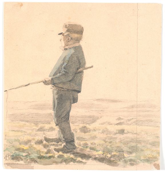 Here we see Childe Hassam's "Scene in Holland," rendered in watercolor. Observe how Hassam composes the scene into distinct horizontal layers, each contributing to a sense of depth and spatial organization. The composition is bisected by the flat plane of the field, creating a division between labor and landscape. The structural organization draws our attention to the figures in the foreground. Their tools, rendered as simple lines, are extensions of the body, emphasizing labor as a direct interaction with the environment. The cool blues of the workers’ clothing contrast with the warm earth tones of the landscape, setting up a dialogue between man and nature. The texture of the brushstrokes, particularly in the sky, adds a sense of atmospheric depth, hinting at the transient qualities of light and air. Note how the horizon line, though subtle, acts as a structural anchor. It not only provides a sense of place, but frames the painting's formal and thematic tensions.