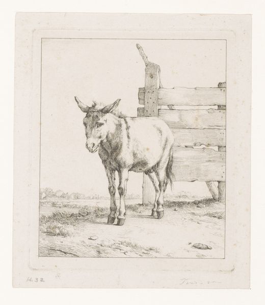 Editor: So, we're looking at "Koeienkop naar rechts," or "Cow's Head to the Right," an engraving by Joannes Bemme, created sometime between 1800 and 1802. It's a fairly simple, realistic drawing... almost feels like a portrait. What stands out to you about this image? Curator: Well, given the time period and the artist’s clear skill in engraving, I immediately think about the socio-economic context of agriculture and animal husbandry. In the Netherlands during this era, livestock were crucial; owning a healthy cow signified prosperity. The realism style elevates the cow beyond a simple farm animal; it’s a subject worthy of artistic study and perhaps even admiration. Do you think this representation plays a role in shaping perceptions about rural life or agriculture? Editor: That's an interesting point. It could be argued that, by portraying the cow in such detail, Bemme is also legitimizing the animal’s role in Dutch society. But who was this image intended for, exactly? Was it a decorative print, or something else? Curator: That's key. Considering its display in the Rijksmuseum, a public institution, how does this artwork engage with national narratives of agrarian identity? Perhaps prints like these were circulated among landowners, agricultural societies, or even aspiring farmers, shaping their understanding of animal breeds or farming best practices. Editor: So, it is interesting to view what would initially appear as simple animal portrait through this broader societal and historical context. Thanks. Curator: Absolutely, remembering the intersection between artistic representation and socio-political factors helps reveal hidden depths within seemingly simple images, wouldn't you agree?
