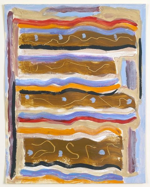 This vibrant, untitled work by Alfred Jensen presents a bold interplay of colored rectangles, each stroke rich with layered oil paint. The arrangement, bisected by intersecting red and blue lines, immediately evokes a sense of order, a visual language not unlike the symbolic grids found in ancient cosmological maps. Think of the I Ching, where arrangements of lines symbolize the universe's complex interplay, or the color theories of Goethe, where colors are tied to specific emotions. Here, each hue feels carefully considered, triggering a cascade of associations. This echoes the ways in which alchemists attributed colors to the stages of transformation. Such elemental forms and colors resonate deeply, stirring a profound emotional response. Perhaps this is because they tap into something primal, a collective memory of symbols that have guided human understanding for millennia. Like the recurring motifs in dreams, these colors and patterns resurface, reinvented, reminding us of the cyclical nature of knowledge and experience.