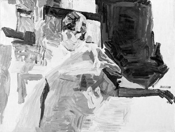 Niels Larsen Stevns made this painting, Interior with Seated Figure, with oil on canvas and a limited monochrome palette. The beauty of this piece lies in its process, in the visible brushstrokes that build the form. Look closely, and you’ll see how Stevns uses the materiality of the paint – its thickness, its texture – to create a sense of depth and shadow. The brushwork is direct, immediate, and gives the work a feeling of movement and energy, as if the artist were wrestling with the image. See the way the paint is dragged across the surface, especially around the figure's head. It's both tentative and bold, capturing a fleeting moment. Stevns was working at the same time as other artists like Vuillard, who also took interiors as their theme. What distinguishes Stevns is this pursuit of the unvarnished truth. He reminds us that art isn't about perfect representation, but about seeing and feeling.