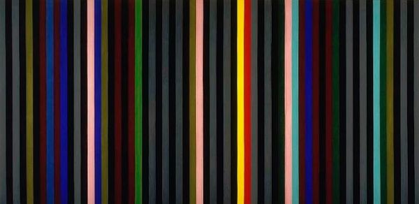 Editor: We are looking at Ian Davenport’s "Poured Lines: Orange" from 2005, made with acrylic paint. The stripes of vibrant colors immediately give it a playful feel, but something about the rigid order feels…almost regimented? How do you interpret this work? Curator: Those colorful lines strike me as visual echoes. It reminds me of color field paintings; the emotional impact relies almost entirely on color and the simplicity of form. The ordered lines can symbolize societal structures and rules we unconsciously internalize. Yet the “poured” aspect introduces an element of chance, chaos, even… are these rigid forms solid, or fluid? Does this visual friction prompt us to question established orders? Editor: I see what you mean about questioning the order... the way the paint drips gives it an almost rebellious feel. It’s so controlled, yet letting go. It feels very modern. Curator: Exactly! The artist harnesses accident and control. Think about the color choices, too. Orange often signifies energy, optimism, and creativity, yet each shade has nuances, adding complexity and disrupting simple, happy connotations. Do these juxtapositions of shades trigger cultural memories or even personal associations? Editor: That's interesting, I never thought about color as carrying memories. It really does invite a deeper consideration than just a fun painting. Curator: The key is to ask, “What is this combination of colours trying to tell me from a historical and social point of view?” And, also from your own individual experience, of course. What hidden cultural layers and coded messages might lie in such an everyday visual object? Editor: I'm leaving with more questions than answers! Thanks for unveiling some hidden meaning within what I thought was simply just...stripes.