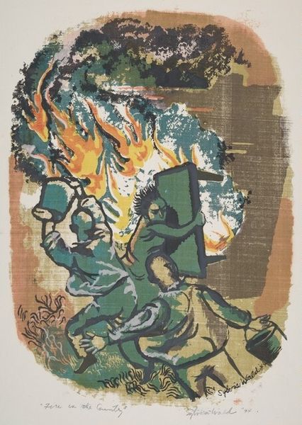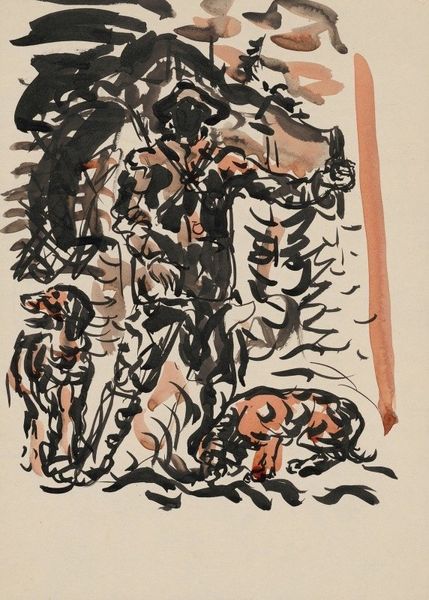 This print by Lovis Corinth captures a violent confrontation between a wolf and a fox with an expressive, gestural style. The composition is a flurry of jagged lines and clashing tones, dominated by earthy browns and reds. The artist's frenzied marks create a sense of chaotic energy. The scene is only loosely defined, with the animals emerging from a dense thicket of marks that suggest a forest. Corinth destabilizes traditional depictions of animal combat through abstraction. We can read a semiotic system of signs in the gestural brushstrokes. They evoke not just the physical struggle, but the raw, untamed aspects of nature and the primal instincts driving these creatures. This abstraction invites us to question the boundaries between representation and expression. The lack of clear narrative details focuses our attention on the formal qualities of the artwork. This transforms a simple scene into an intense visual experience. It also provides a metaphor for broader themes of survival, competition, and the darker side of existence.