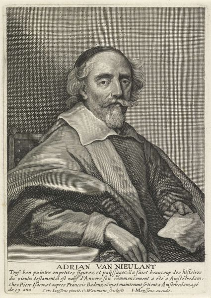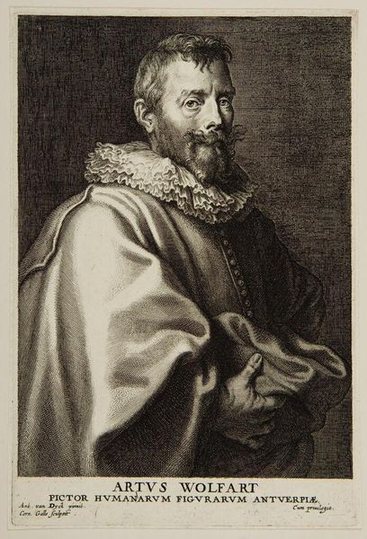 Lucas Vorsterman I created this print, "Portret van Pieter de Jode (I)," sometime in the 17th century. It captures the likeness of Pieter de Jode, a fellow engraver in Antwerp. The image itself speaks to the booming print culture of the Dutch Golden Age. Printmaking became a major industry, as the technology allowed images and information to be disseminated widely and relatively cheaply. De Jode's success was tied to this changing media landscape. His attire and pose speak to his status in Antwerp society. The portrait also represents the institutional structures of artistic production at the time. Guilds played a huge role, standardizing training and protecting the interests of artists. Understanding the historical context around this image involves looking at guild records, business ledgers, and inventories. By digging into these sources, we can see how art was embedded in the commercial and social life of the time.