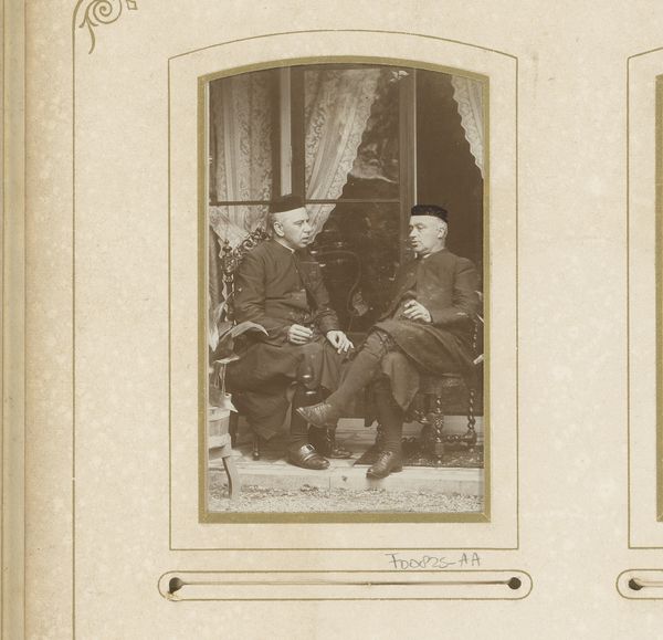 Editor: This photograph, "Portret van twee jongens," taken by Louis Fraenkel sometime between 1895 and 1914, is striking. The formality of their poses, contrasting with what looks like simple, everyday clothing… What stories do you think this image holds? Curator: That contrast you noted is key. These carefully staged portraits, ubiquitous in that era, become fascinating when viewed through a contemporary lens. The class dynamics are palpable. The bows and outfits hint at a desire to project a certain status, a visual performance of respectability amidst rapid social changes. Do you see how their physical placement – one leaning on a pillar, the other slightly behind – subtly reinforces a hierarchy, however innocent it may seem at first glance? Editor: I see what you mean. It’s not just a snapshot; it's a carefully constructed representation. The pillar, a symbol of stability, becomes part of the narrative. Do you think the setting itself—likely a studio—plays a role? Curator: Absolutely. The artificiality is the point. This staged environment highlights the conscious effort to shape their image. We have to ask: who is this image *for*? Is it a personal keepsake, or meant to be presented and seen within a community? How might their identities be both affirmed and constrained by the cultural expectations embedded in this kind of portraiture? It makes us think about the performance of childhood, and even masculinity, doesn’t it? Editor: It does. Thinking about it now, I realize I initially viewed it as just an old picture, but understanding the context really changes how I see it. It makes you question everything about it. Curator: Precisely! By examining these seemingly simple portraits through the lens of history, sociology, and even performance theory, we unlock richer, more nuanced understandings of the subjects, the artist, and the society that produced them.